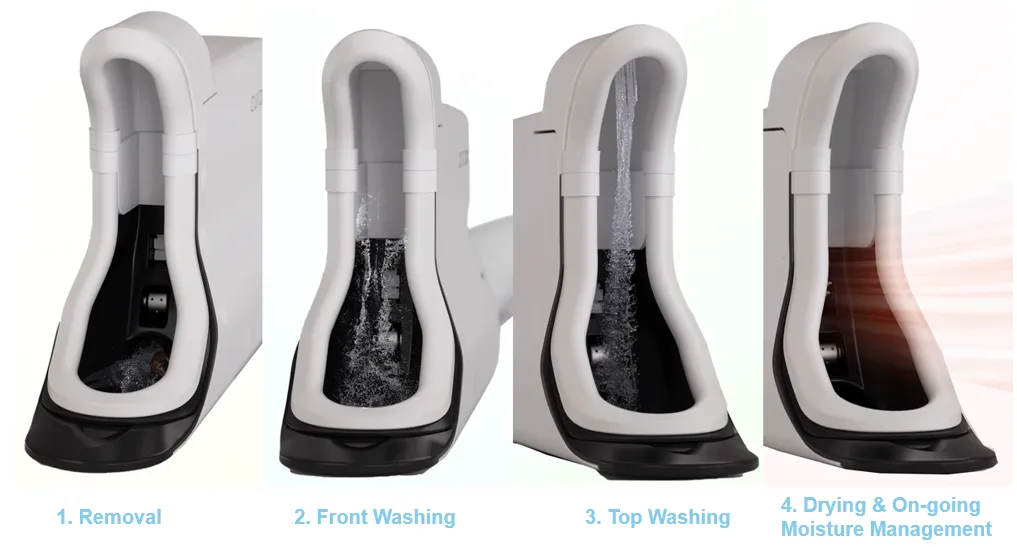 Significant technological innovations of the carebidet toileting care system include five different automated functions that it performs: